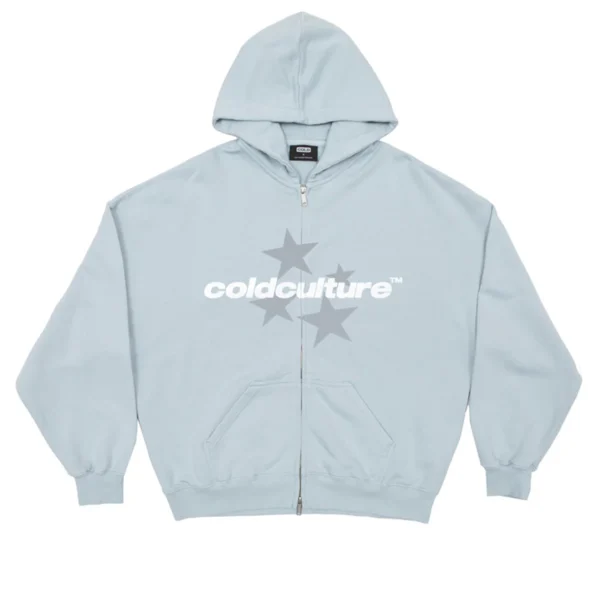 Cold Culture Italic-Stars Zip Hoodie Pale Blue